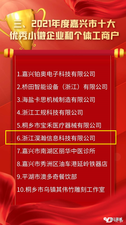 【喜報】浙江淏瀚榮獲“2021年度嘉興市十大(dà)優秀小(xiǎo)微企業”