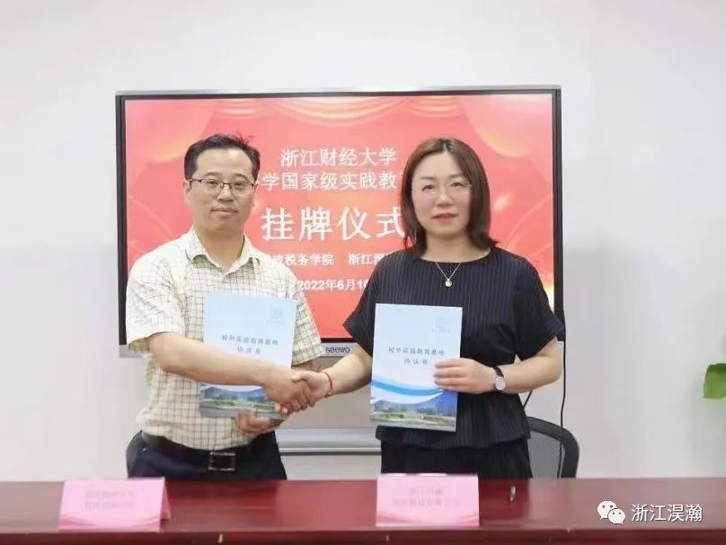 最後浙江财經大(dà)學财稅學院副院長高琳、浙江淏瀚總經理毛亞萍共同簽署了浙江财經大(dà)學《校外(wài)實踐教育基地協議書(shū)》,并挂牌“浙江财經大(dà)學經濟學國家級實踐教育基地”。