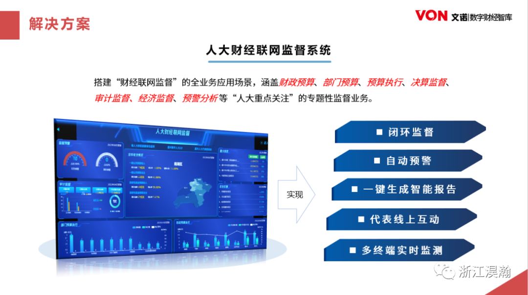 場景聚焦聚力多跨協同和制度重塑,強化人大(dà)監督效能,創新了“參與式審查、立體(tǐ)式監督、聯動式跟蹤、定量式拓展”,實現人大(dà)财經“六位一(yī)體(tǐ)”全要素、全鍊條、全閉環監督,縱深推進實現平台、功能、體(tǐ)制機制“三貫通”。