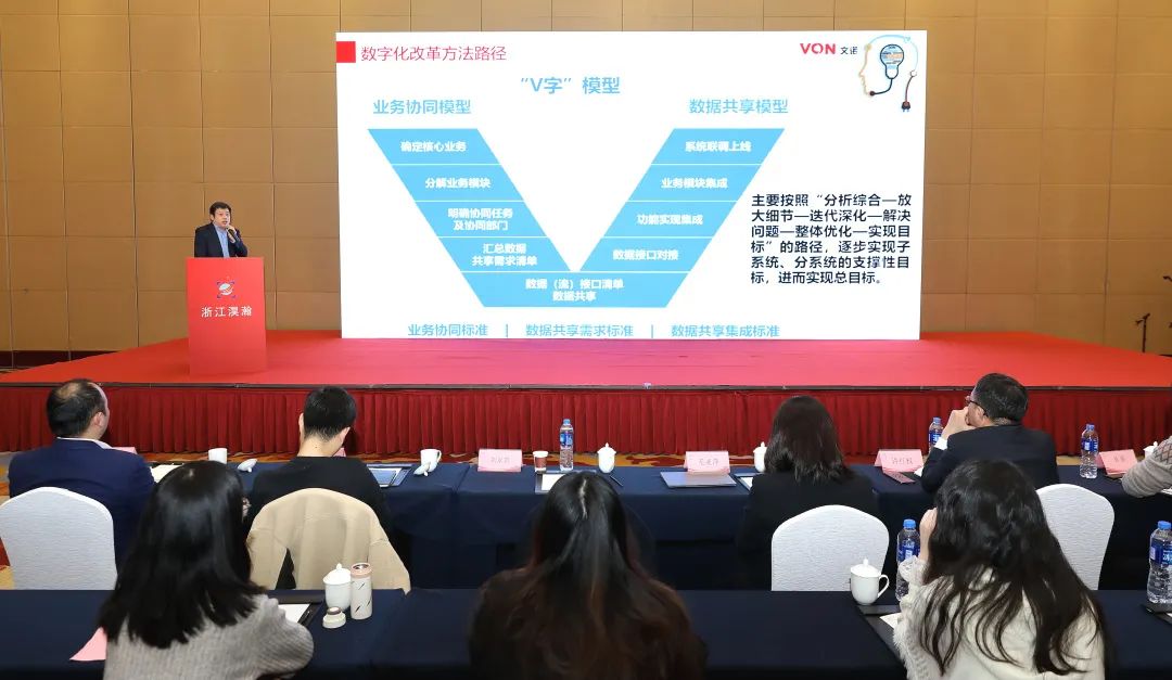 副總經理劉永貴為大(dà)家介紹數字政府的基本情況。劉總從數字政府内涵、框架、建設路徑及實踐參考等多個方面展開(kāi)了講解與知(zhī)識分(fēn)享,包括浙江省數字化政府的系統框架、發展背景、總體(tǐ)要求、賦能能力體(tǐ)系建設、改革方法路徑、相關建設成效、優質成果等。