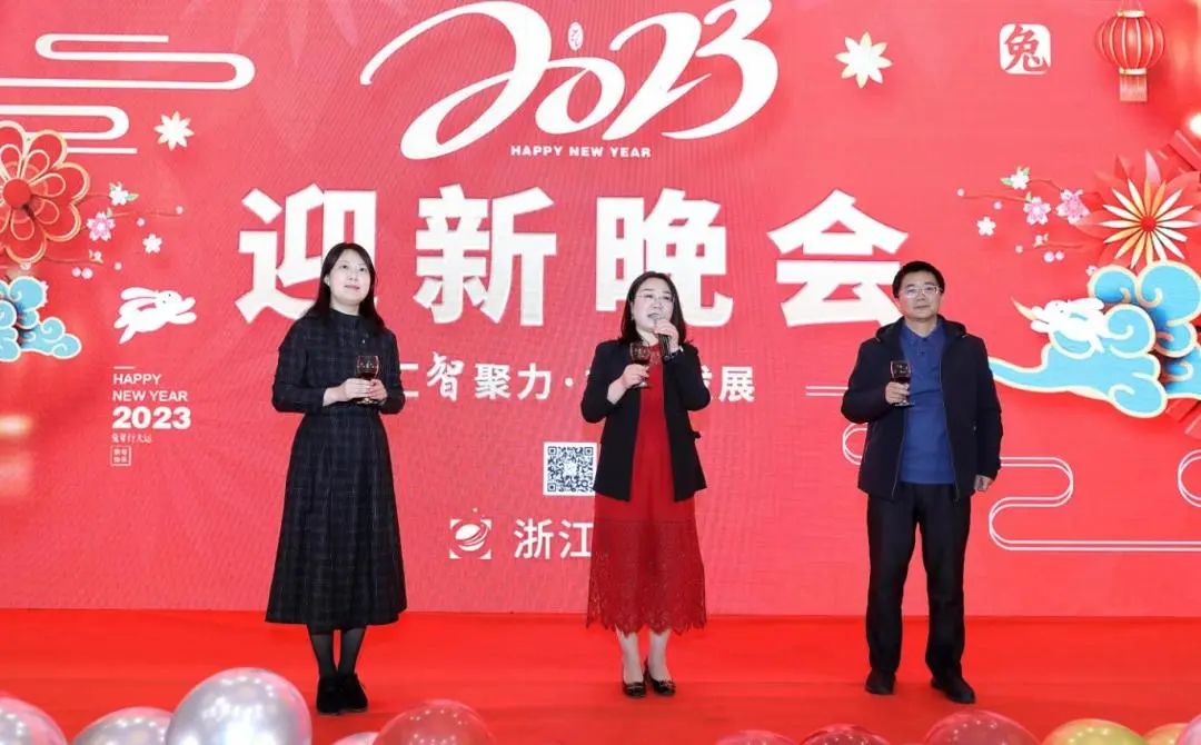 公司産教合作院校——浙江财經大(dà)學财稅學院院長司言武、嘉興學院數科學院黨委書(shū)記戰昕和公司領導毛總一(yī)起上台緻辭。兩位院校領導對校企雙方合作取得的成果表示祝賀,祝賀此次迎新年會圓滿成功;同時表示會為進一(yī)步加強成果應用轉化和為社會輸送更多的人才而共同努力,祝願校企合作之花的明天更美好。