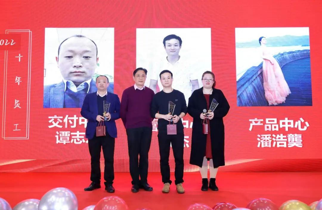 從2008到2023,公司走過了15年,這是第五個年頭頒發10年員(yuán)工(gōng)獎,感謝他們為公司的付出,見證公司的成長。今年的“10年員(yuán)工(gōng)獎”獲得者分(fēn)别是來自産品中(zhōng)心的潘浩龑、營銷中(zhōng)心的戴傑、交付中(zhōng)心的譚志(zhì)東。公司為他們送上了定制的珍貴禮物(wù)和獎杯,感謝他們的付出,也鼓勵他們繼續和公司同心同行,創造輝煌佳績。
