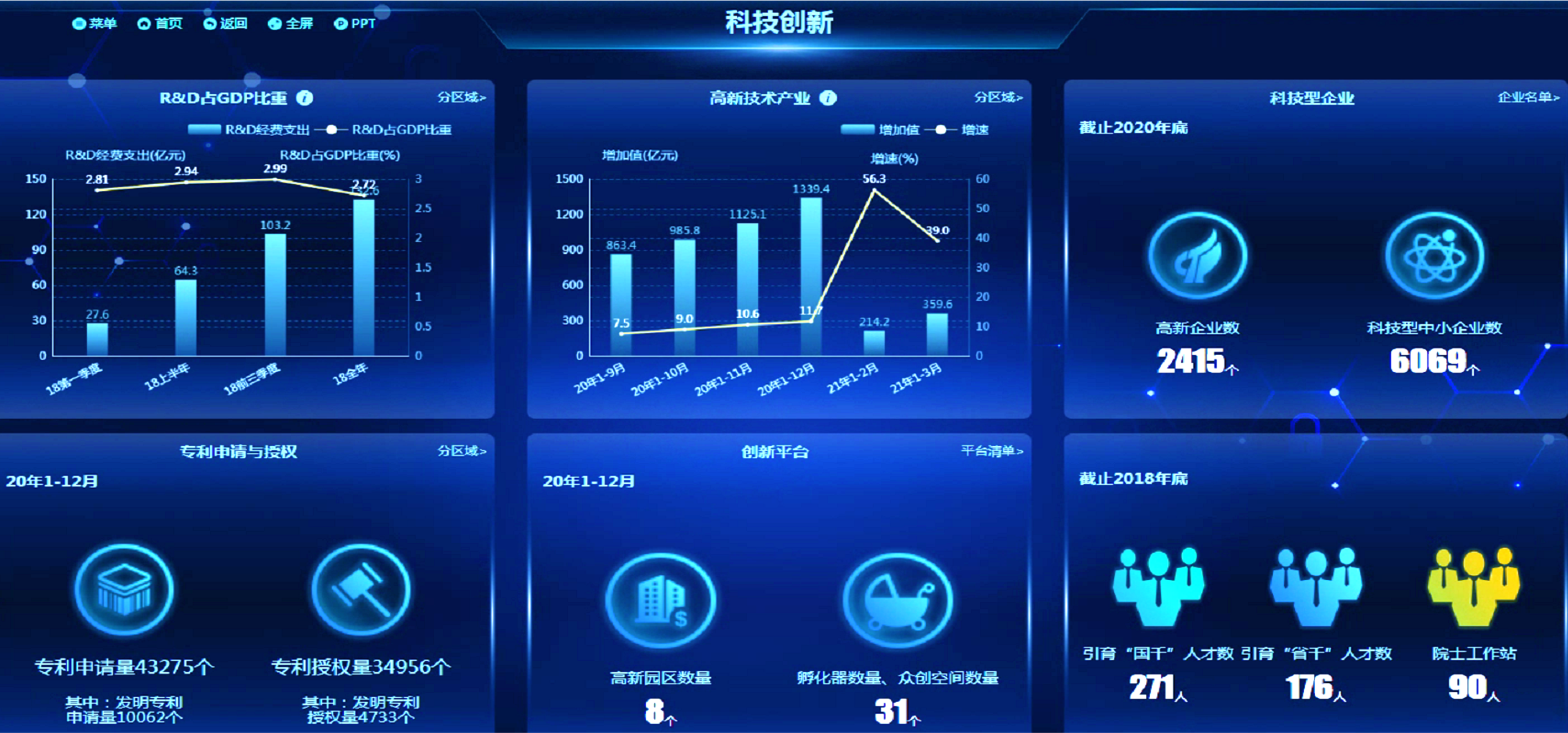 實現從“宏觀、中(zhōng)觀、微觀”三個層面對地方政府經濟運行的相關指标,進行實時動态監測、預警、預測、政策仿真等;為區域經濟的可持續發展提供數據支撐、領導決策支撐,成為地方政府經濟運行的“智腦”。