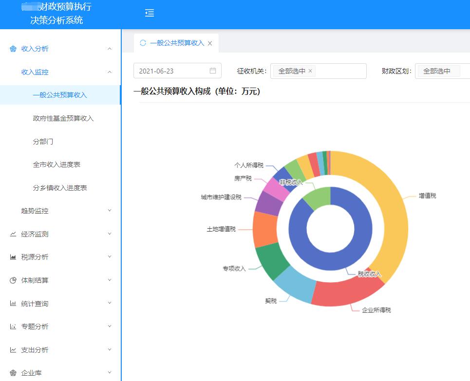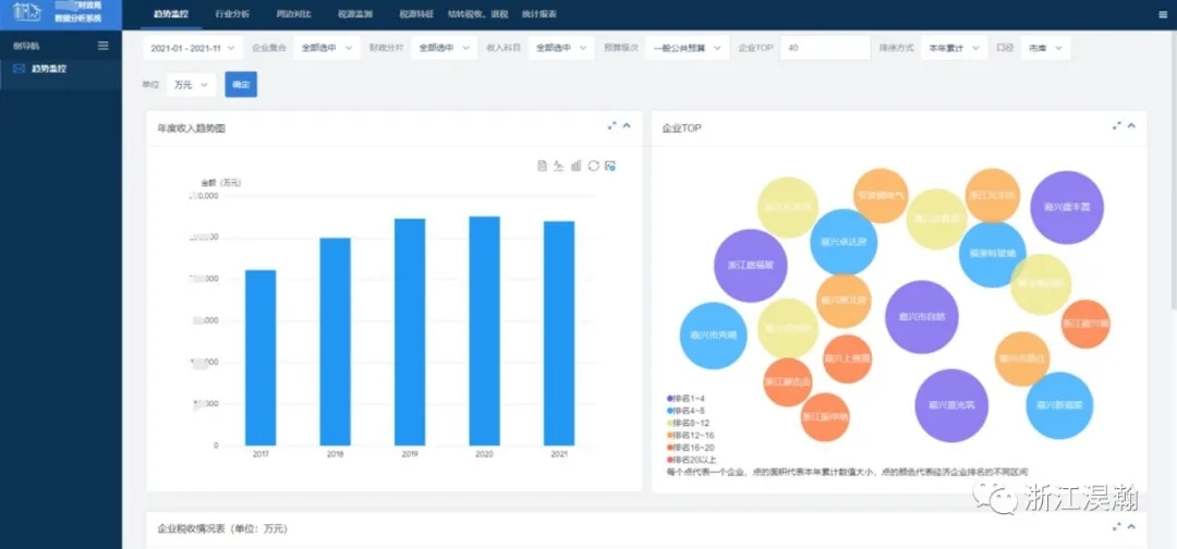 從财政視角出發,利用平台數據,對财政收入多維監控及預警、産業/收入結構變動、财政收入預測、重點稅源監控、稅源異動等多角度進行全方位分(fēn)析研究。