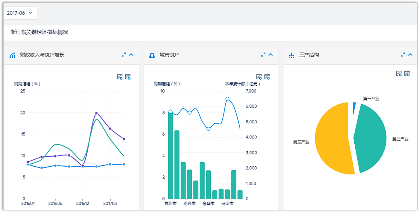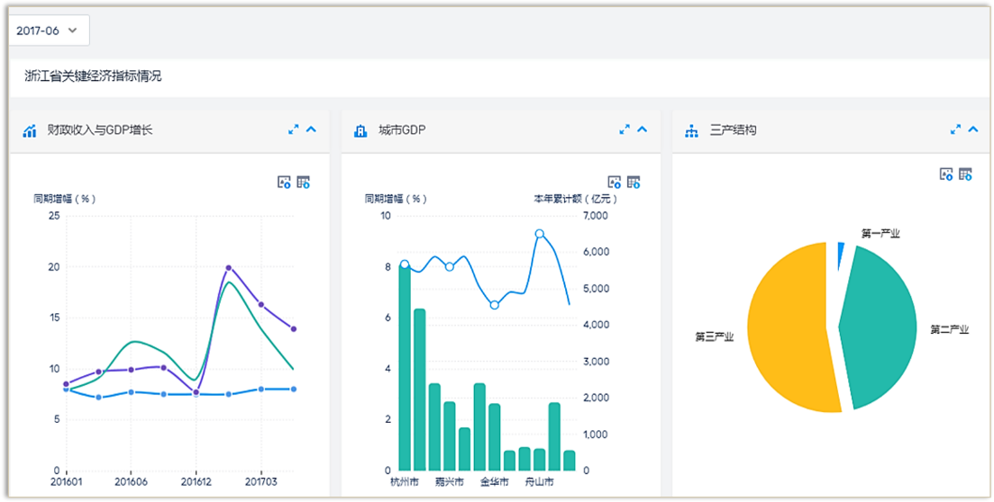 實現用數據“描繪經濟運行”,分(fēn)析宏觀經濟與财政的關系;用數據“服務财經決策”,分(fēn)析區域、産業、行業經濟與财政的關系;用數據“智慧理财”,分(fēn)析财政整體(tǐ)收支情況。全方位把控地方經濟發展态勢,挖掘特色産業優勢,貫通橫向各部門數據,落實好預算執行分(fēn)析實效,助力領導科學決策。