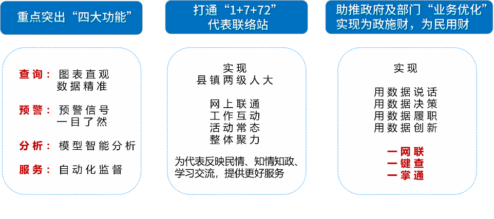 通過财經聯網應用場景建設,實時抓取橫向部門财經數據,實現數據分(fēn)析、監督預警、整改反饋的實時跟蹤,全方面、全流程監督監督。不斷發展全過程人民民主建設,使人民民主制度在實踐中(zhōng)得到有效落實,實現全過程民主各環節彼此貫通,全方位、全鍊條保障人民當家作主。