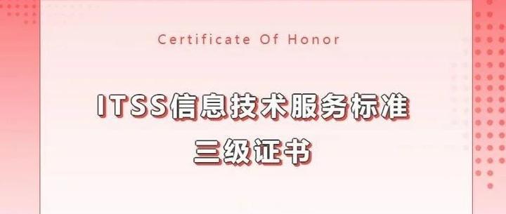 Certificate Of HonorITSS信息技術服務标準三級證書(shū) 近日,我(wǒ)(wǒ)司順利通過中(zhōng)國電(diàn)子工(gōng)業标準化技術協會審核,獲發ITSS信息技術服務标準運行維護能力三級資(zī)質證書(shū)。這标志(zhì)着公司信息